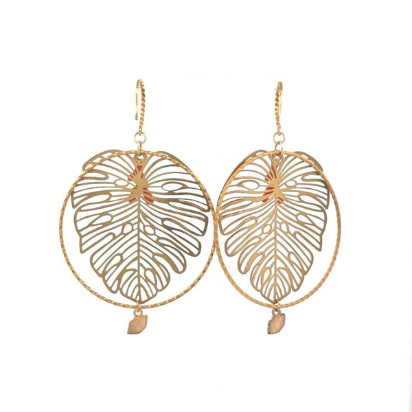 Step up your jewellery game with these eye-catching gold leaf earrings! Featuring delicate leaves framed in elegant circles, topped with vibrant coral accents, and finished with playful pink lip charms that add a flirty, fun vibe. Lightweight and unique, they're perfect for day-to-night looks, making every outfit pop with personality and charm. A must-have for anyone who loves to stand out with a touch of nature-inspired glamour!